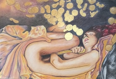 Relectura del mito de "Dánae" donde la lluvia dorada deja de ser promesa divina y se transforma en una presencia densa e inquietante. La obra explora la fragilidad del cuerpo frente al deseo, el poder y el destino.